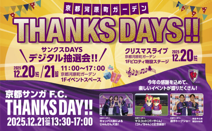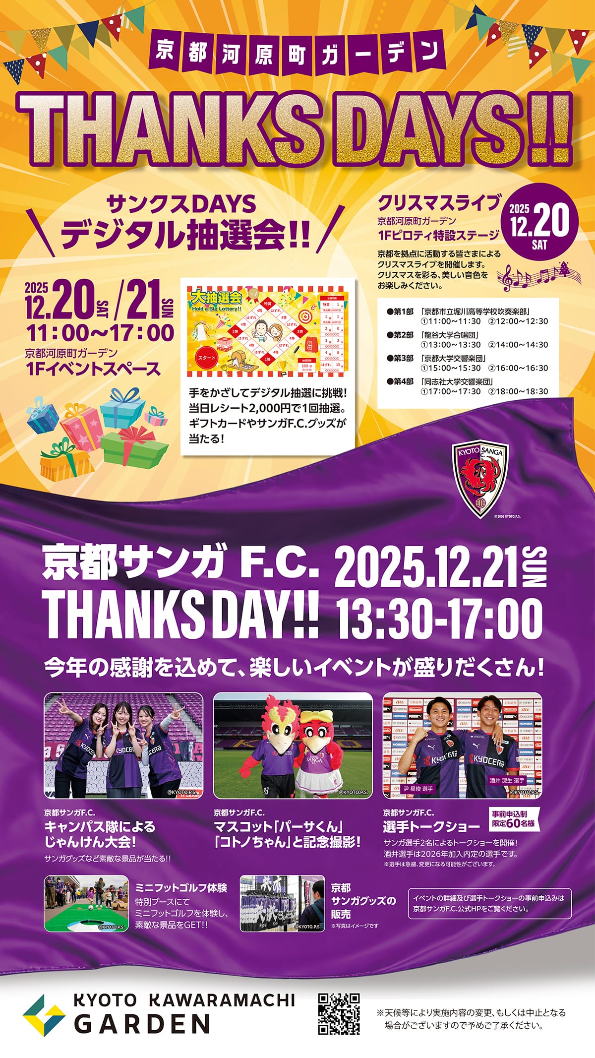 📣 京都河原町ガーデンでは、12/20(土)・21(日)の2日間、「サンクスDAYS2025」と題して特別イベントを開催します!