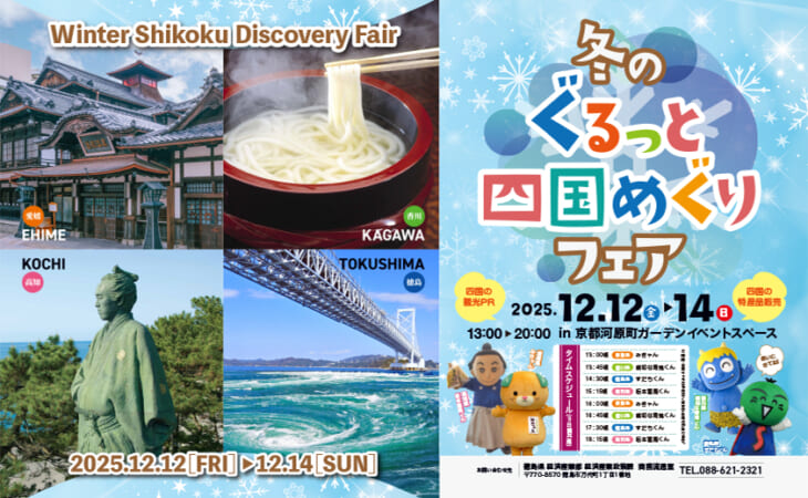 12月12日(金)~12月14日(日)まで、京都で冬の四国を体感いただける「冬のぐるっと四国めぐりフェア」を開催します。
